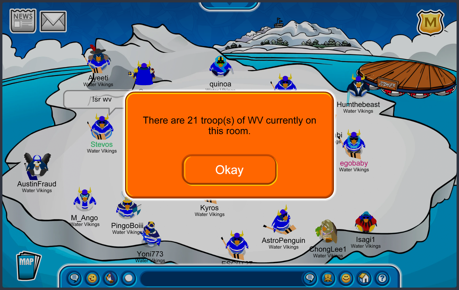 Welcome to WV! We are the strongest, multi-divisional army. We have soldiers from all over the world and we need YOU! Join our Discord and represent your continent on the battlefield! You'll be part of the most legendary organization in Club Penguin History. FEAR THE WAVE! ~Water Vikings Leaders