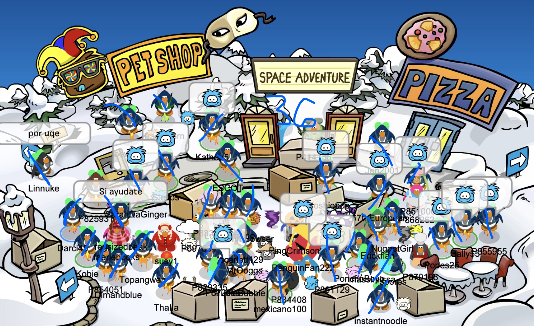 Frostbite, Water Vikings Capital —Good evening, Vikings! Today, we logged onto Sleet on Club Penguin journey for our jetpack race. We made a circle on the plaza after that. We moved to snow forts and made a triangle, then we went flying to the stadium and made an X formation. To end the day, we did a race starting in the cove and ending on the beach. Congratulations to Sarah, who won first place, and Topangwen, who won second. We had lots of fun! As always, Fear the wave!