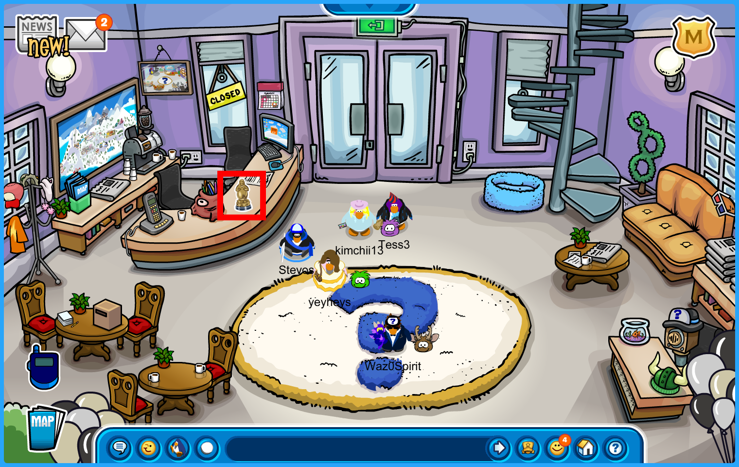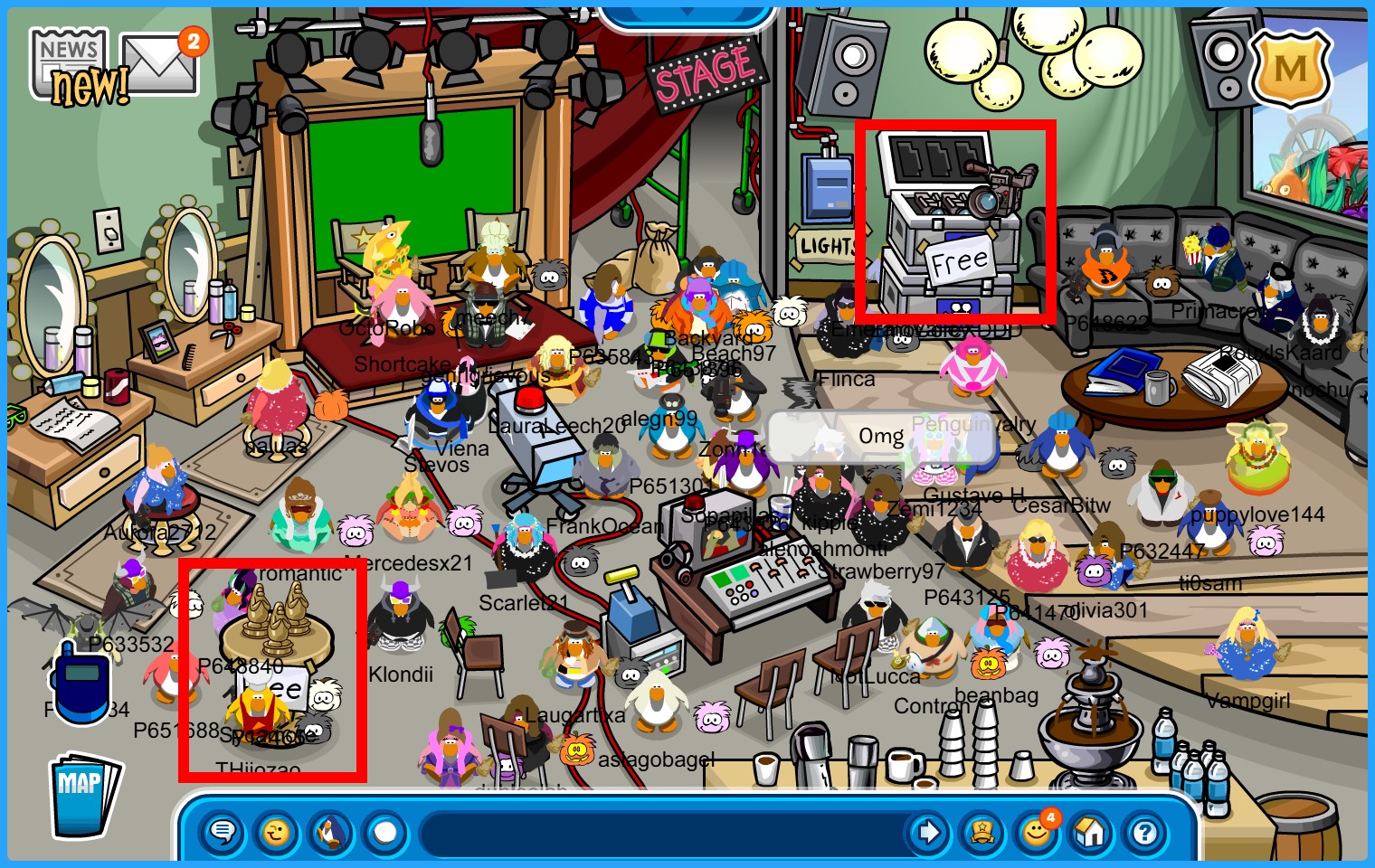 Going Backstage (which is accessible from the Stage) you can grab the Penguin Play Award and Video Camera!