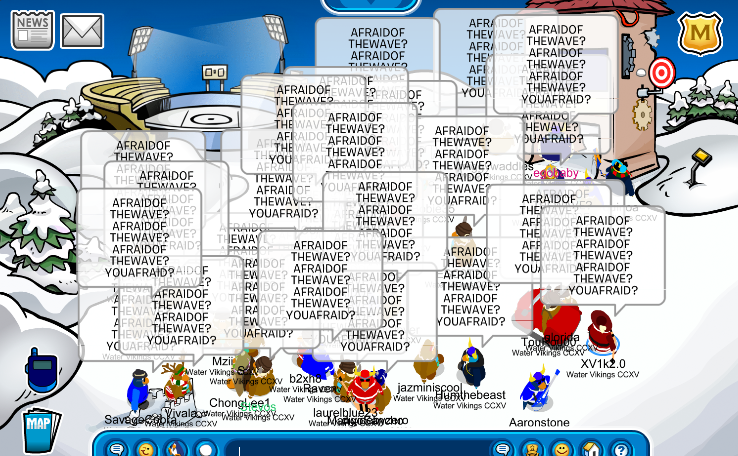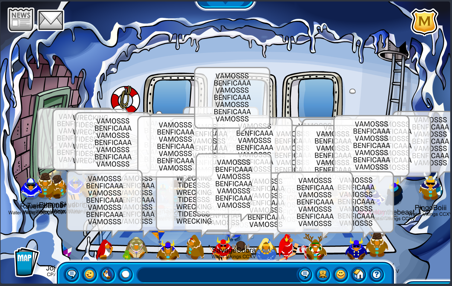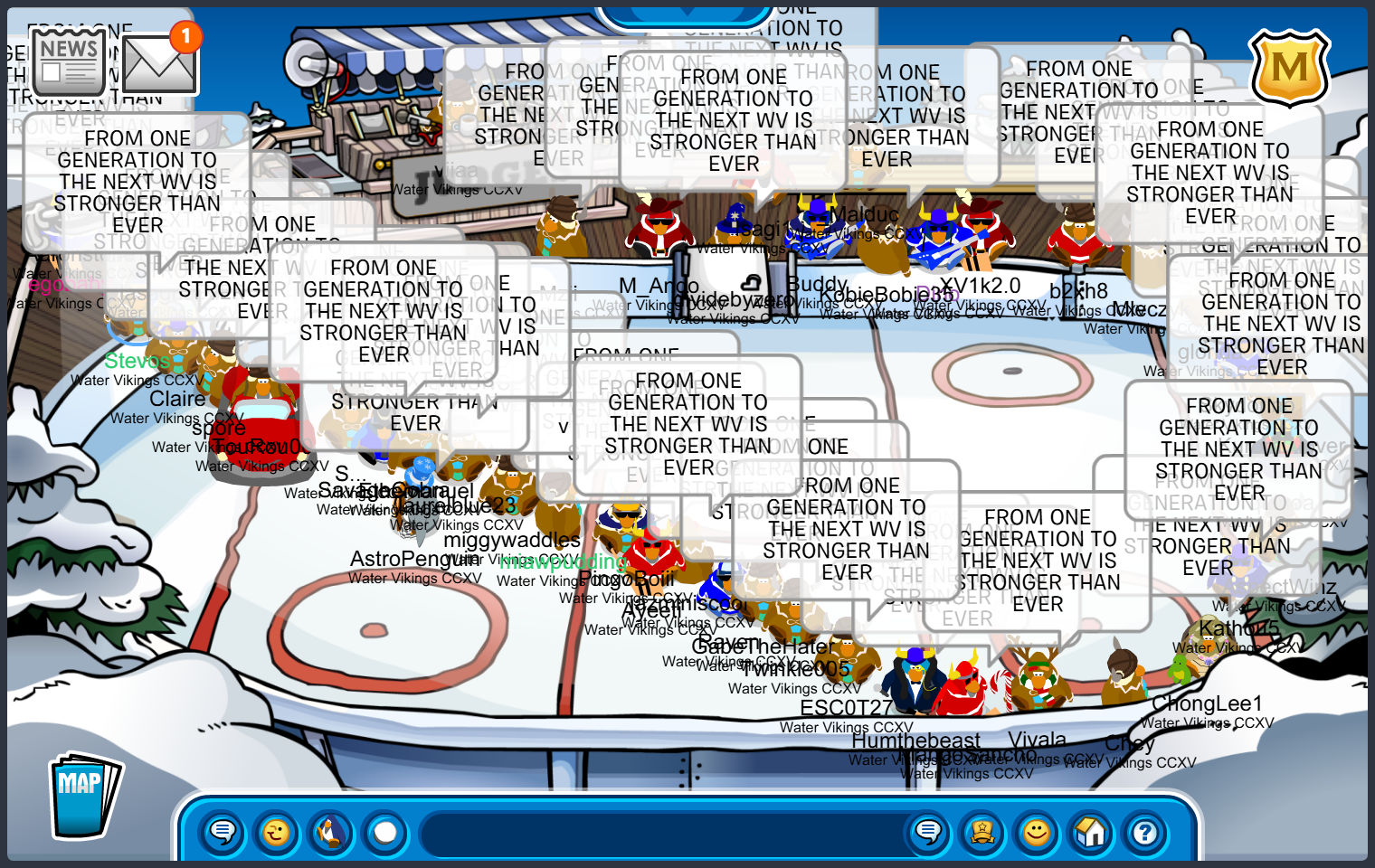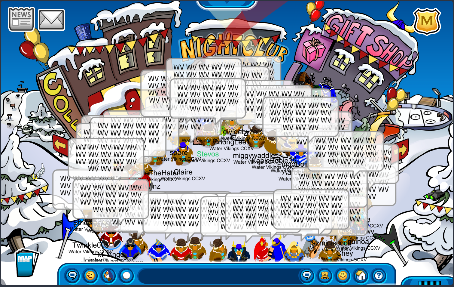 Good morning, afternoon, or evening, Water Vikings! Today we had a very special event; the first in our 15th Anniversary Celebration. We logged on to Frostbite in rooms Iceberg, Town, Underground Pool, Stadium, Snow Forts, and the Dojo. This event in particular celebrated the Blue Summer of 2013, of which we replicated certain forms and event pictures. It was also quite special as the Viking Pantheon/WV Legend as well as Discord server owner, HCOV head and man of many more accolades led the event—teaching all of us about some WV history too.
