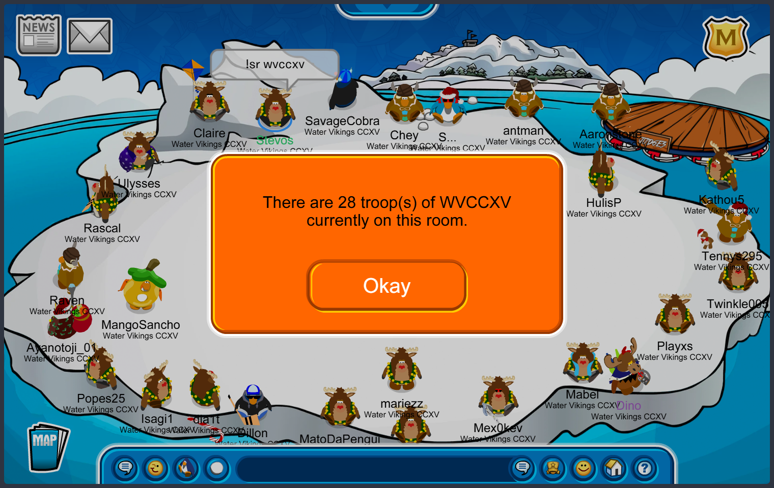 Frostbite, Water Vikings Capital. Rudolph the red-nosed reindeer had a very shiny nose. Good evening Vikings, today we logged on to Frosty – Iceberg to train for the upcoming semi-finals of the Christmas Chaos Tournament against Aliens. We’ve had a very fun training while dressing up as reindeer Everyone did an awesome job during the event. Make sure to keep working hard so we can win and move on to the finals of Christmas Chaos.