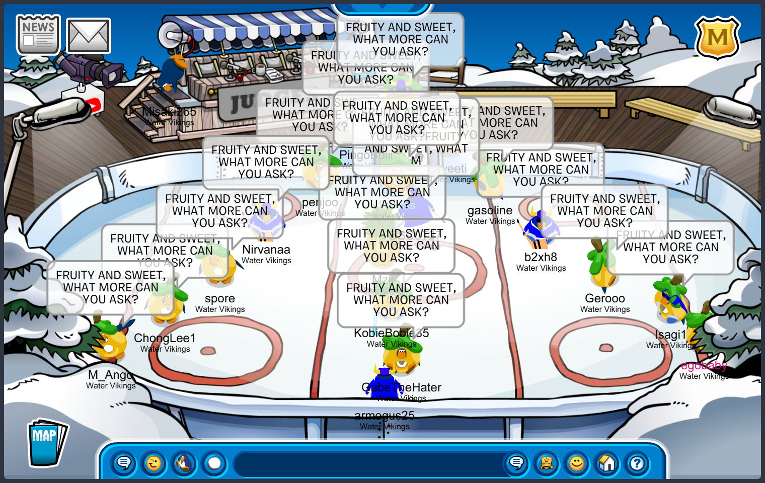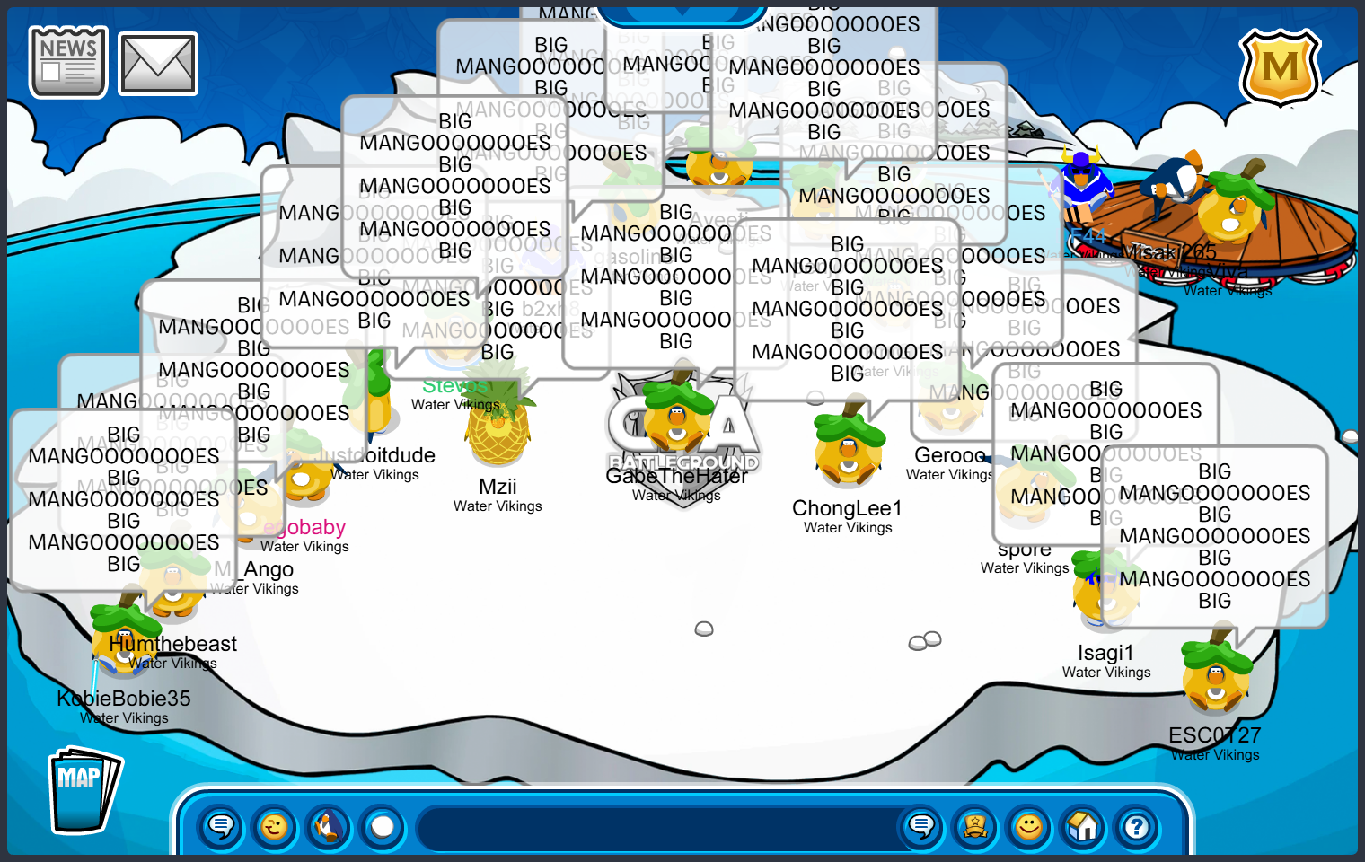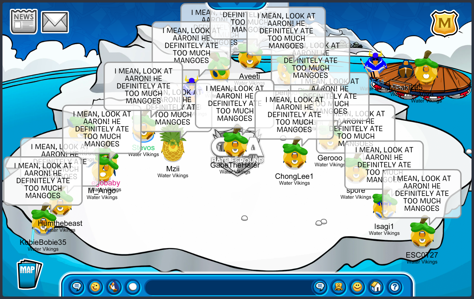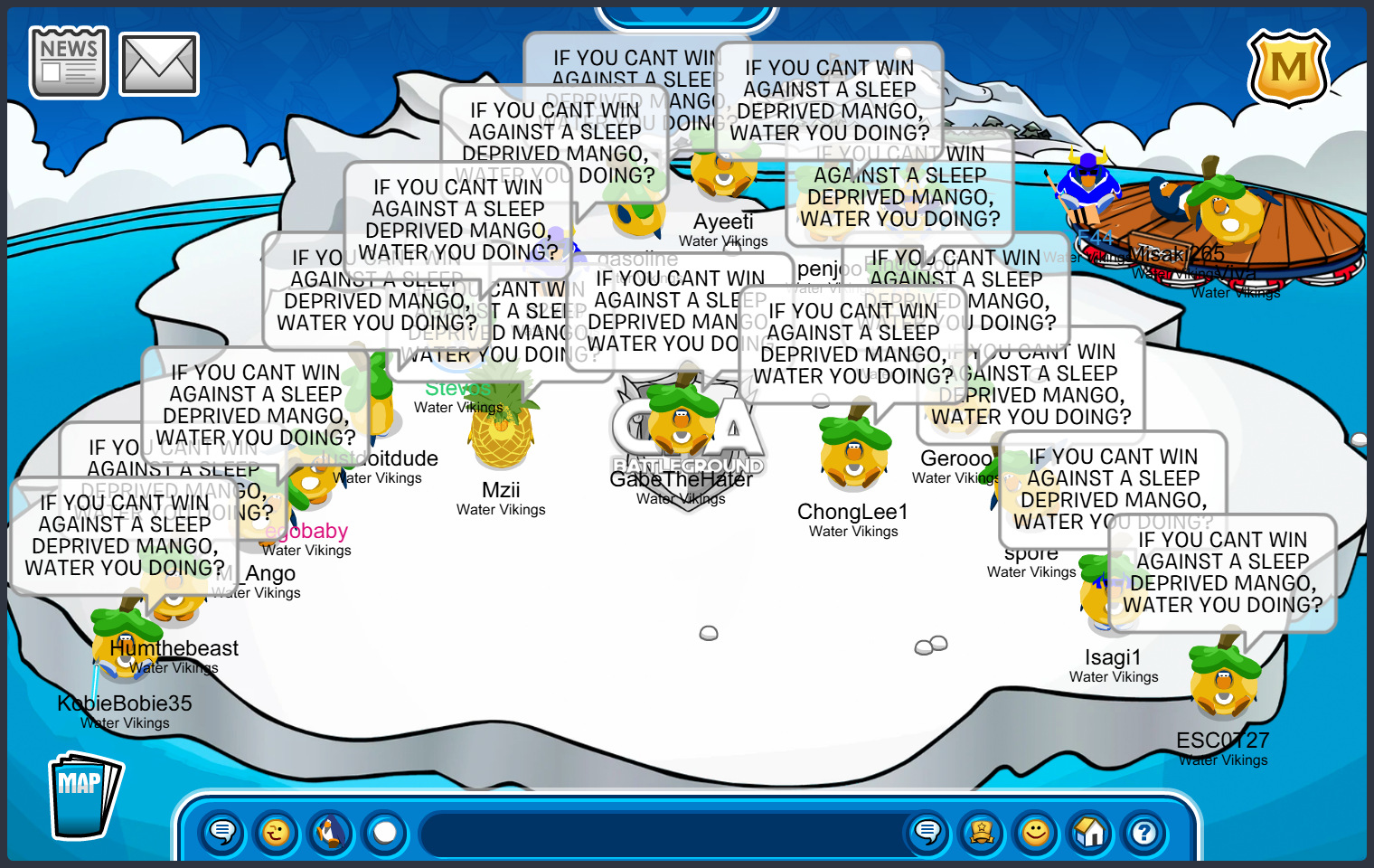 Frostbite, Water Vikings Capital — Good Afternoon Water Vikings!, Today we logged on to Icebreaker, Iceberg then we went to the Stadium and finally to the Docks so we can train for our incoming tournaments and practice battles while also being mangoes so Ango is not lonely in his Mango Clan. Every mango water viking has done amazing and showed amazing dedication by doing great tactics and perfect forms! Well done WV! Keep it up!
