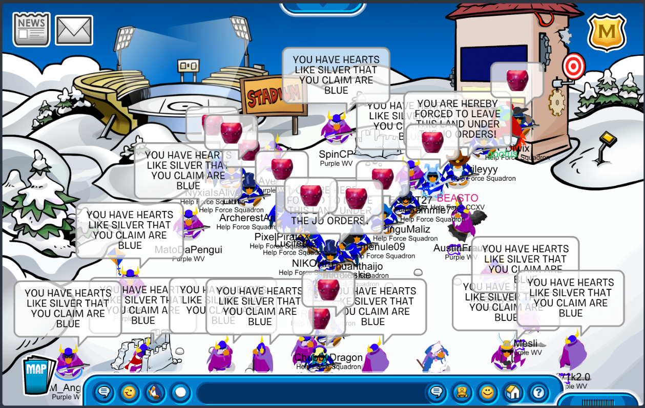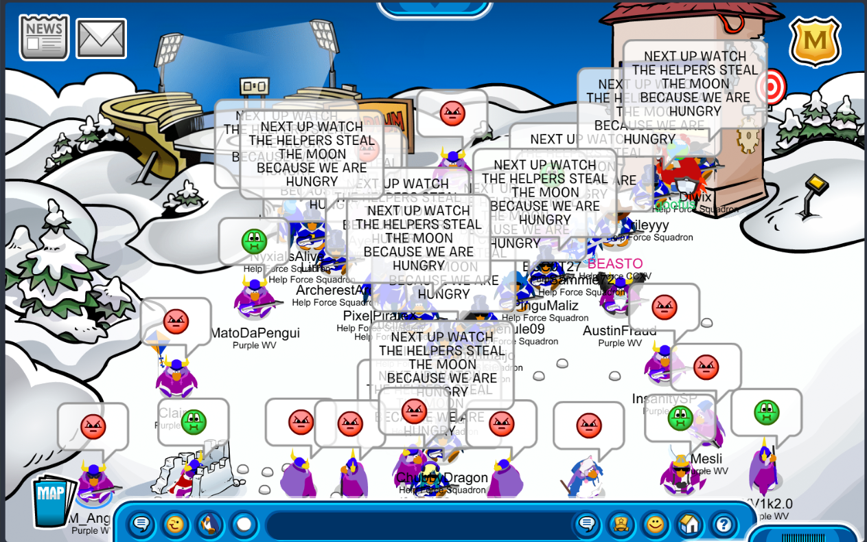 Frostbite, Water Vikings Capital — Good Afternoon Everyone! Today, we logged into Battleground for our practice battle against Help Force! First room was Casa Fiestathen we moved into Inside Mineswe got into Snow Forts next, and we finally finished at Iceberg. Even if we lost, we showed a lot of effort, had a fun time and also took it as training for the upcoming March Madness. Anyways we did great today and I’m proud of everyone!