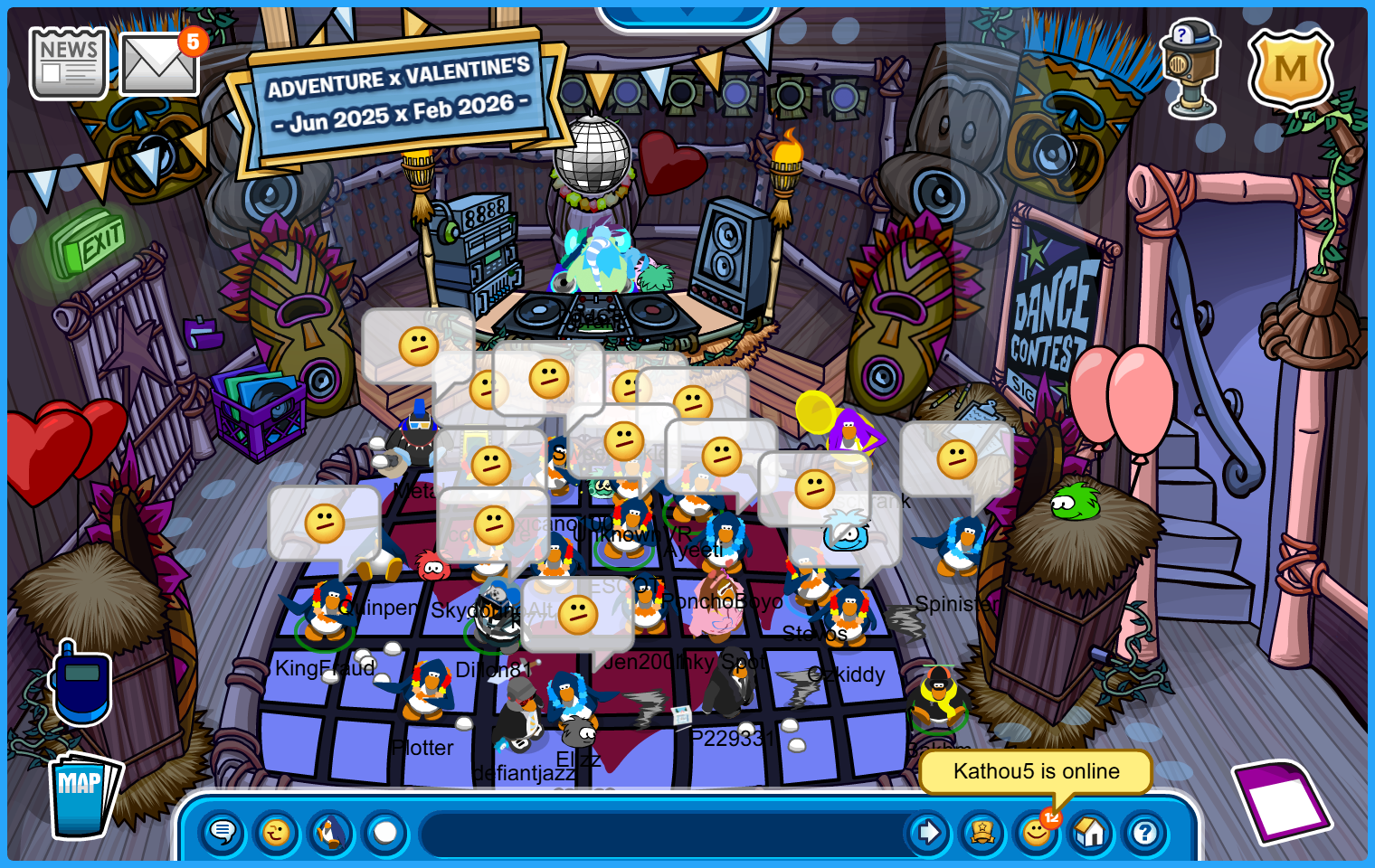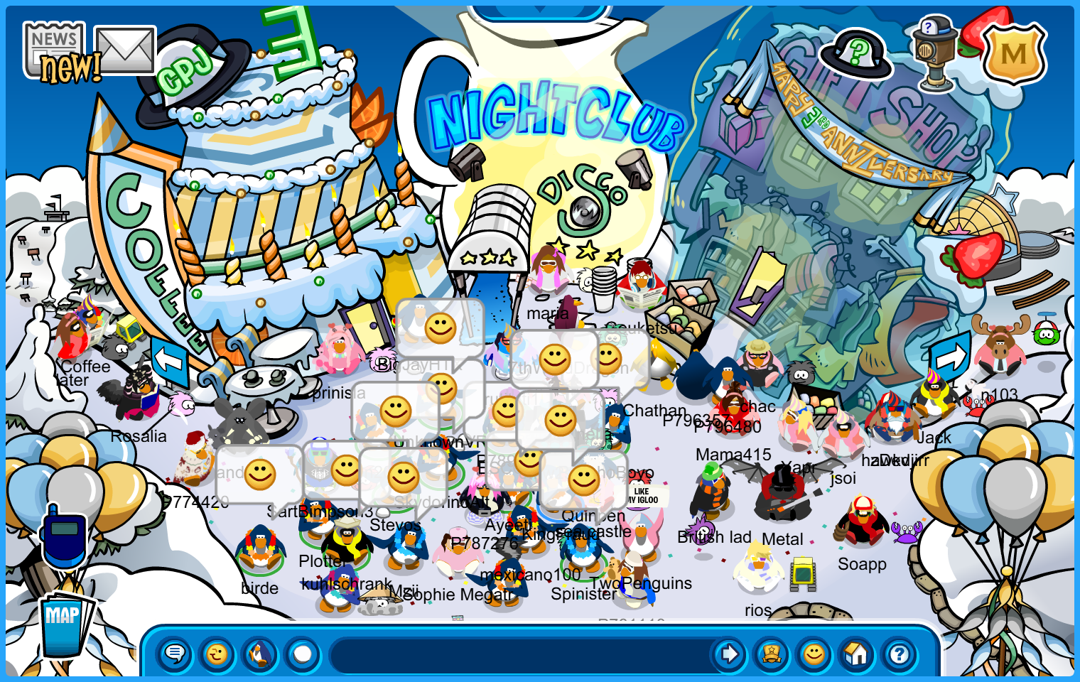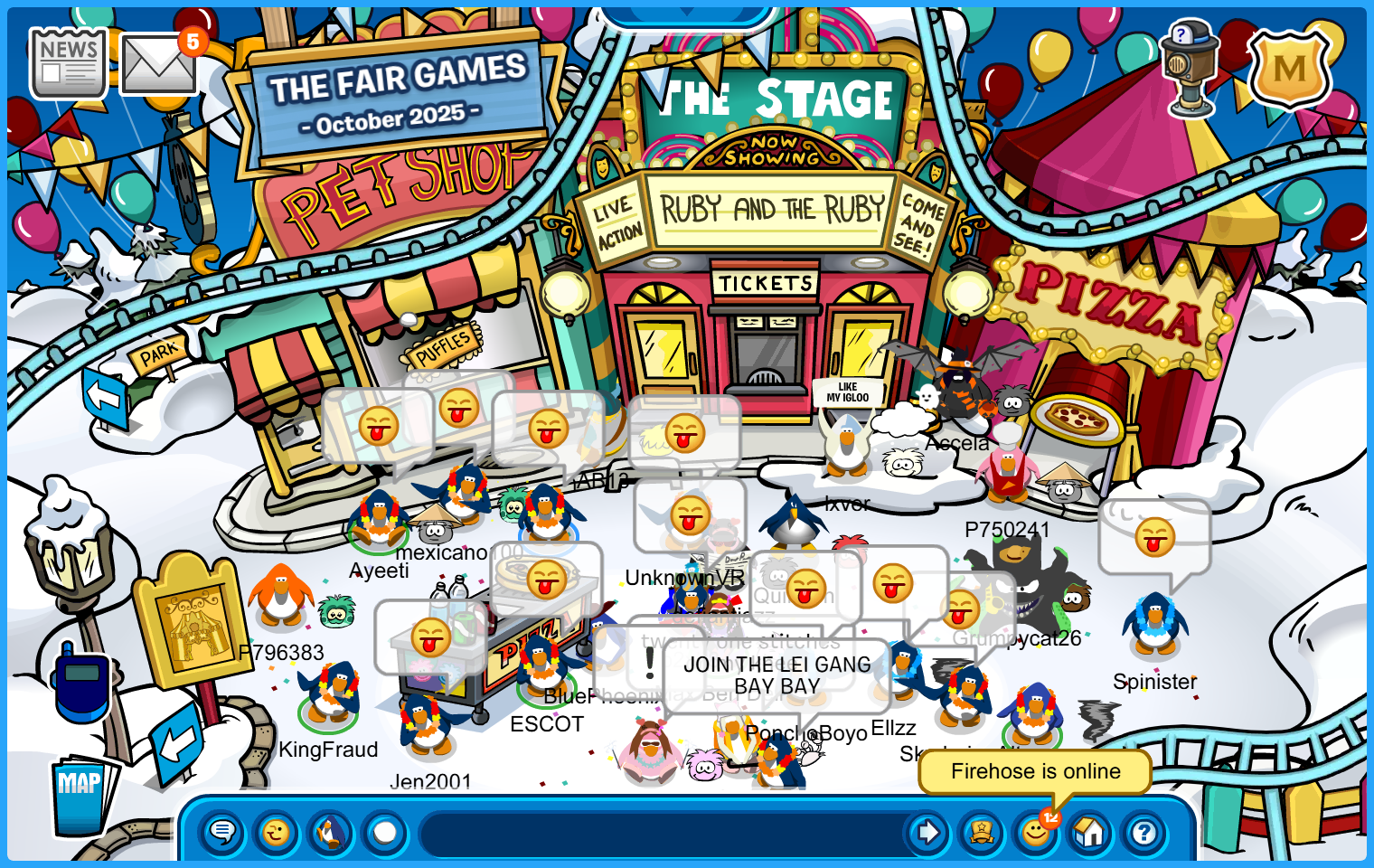 Adorned with our flower necklaces, the Water Vikings went on another trip on Club Penguin Journey, more specifically in Sleet – Town to spread some good vibes and entertain the masses in our tropical accessory! After landing in the town and gathering a crowd, we danced our way to the Nightclub, spending some time there before switching to the Forest and ending our jolly run through the Plaza and into the Pizza Parlour. Check it out on the pictures below!