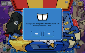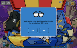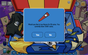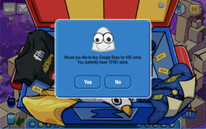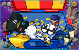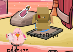 For the next items, please go back to the Box Dimension (go back to where your penguin was or just return to Welcome Room). Once you return, to the bottom right you’ll see this chest that will open up several items for your consumerist needs.