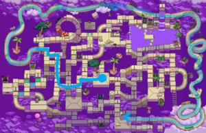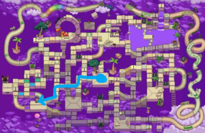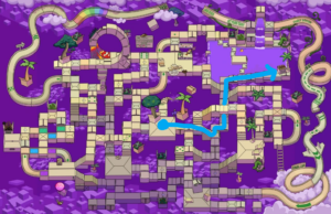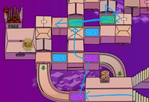 Dislocate your movement to the right, and then take a turn downwards until you reach considerably darker boxes. After that, you’ll be met with 3 portals, a purple, a blue, and a green one.
