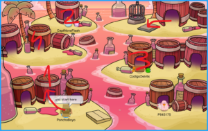 Move to the Cream Soda Dimension, right next to the Strange Dimension. In it, you’ll have to follow a specific order on each barrel. Getting the order wrong will send you back to your previous level. If you are able to correctly guess the order (by using this handy order I wrote down), step on the plate, and you got yourself a free pin!