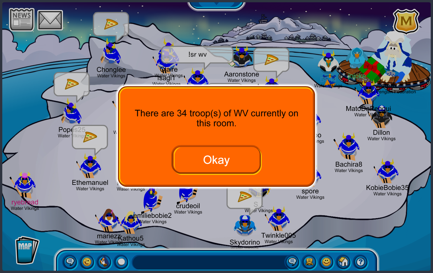 Frostbite, Water Vikings Capital — Good Afternoon Water Vikings! Today we Logged on to Ice Breaker, Docks then we went to Casa Fiesta so we can train heavily to do our X formation a lot better, earlier in the past we have been struggling to make an X so we have finally spent 30 minutes on training to make the X perfect with excellent efficiency in preparation for the tournament upcoming called March Madness. Every WV member can do an X now with amazing Tactics and Bwbs’s. Good Job WV! keep it up!